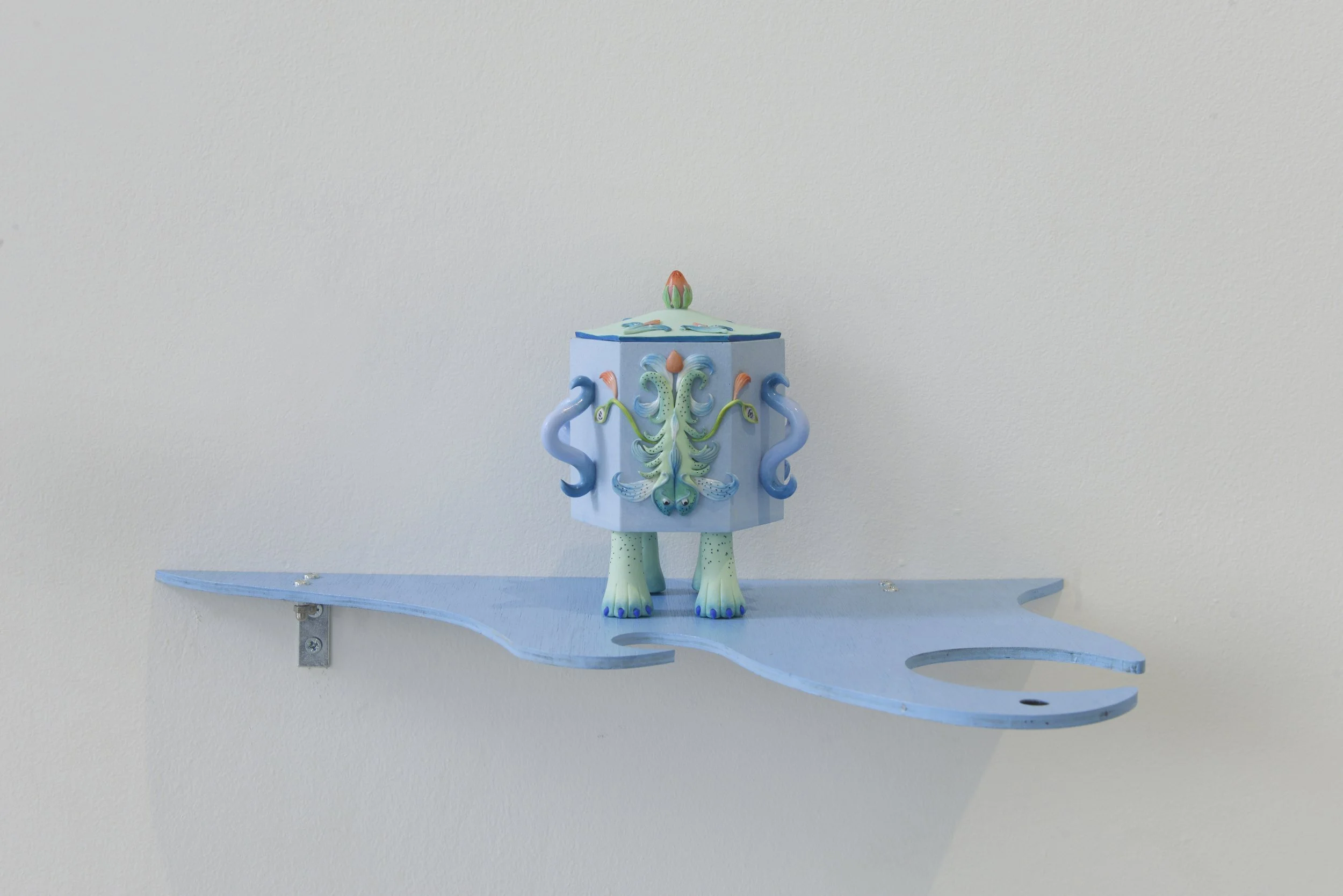 There are two primary areas of research underpinning the work developed for the exhibition: the first centered around animism, both Lim’s larger furniture-like works and smaller ceramic works have a level of anthropomorphism creating a fascination for the artist in the notion of living objects. Lim has subsequently explored a range of Chinese literature focused on enchanted creatures and objects, and mythical storytelling, including the ‘Classics of Mountains and Seas’ and Pu Song Ling’s ‘Tales of a Chinese Studio’. She has attempted to interpret and respond to these texts, which are often coded with philosophical and cultural meanings, by developing a practice of sculptural storytelling, which explores her own journey of identity searching.