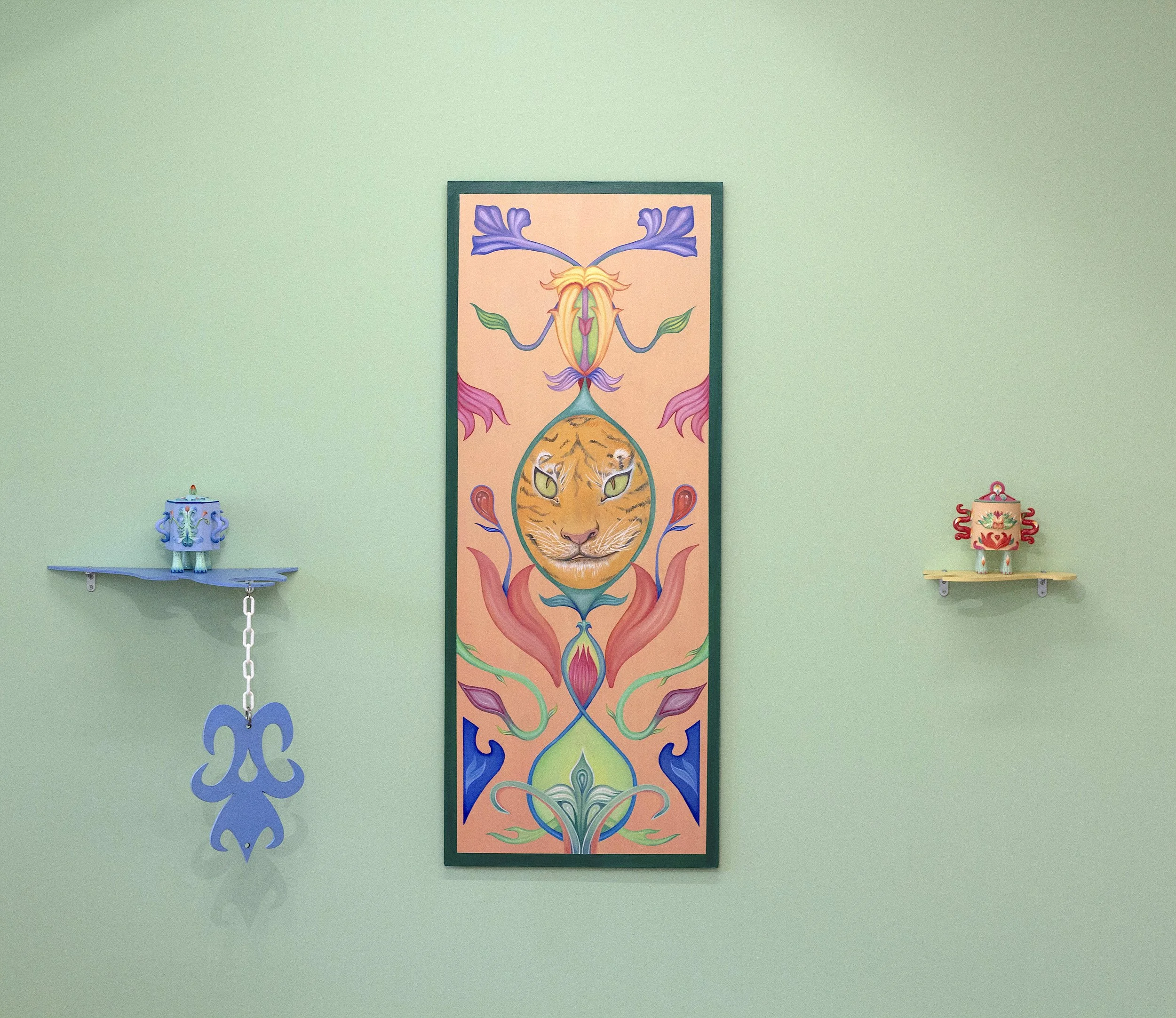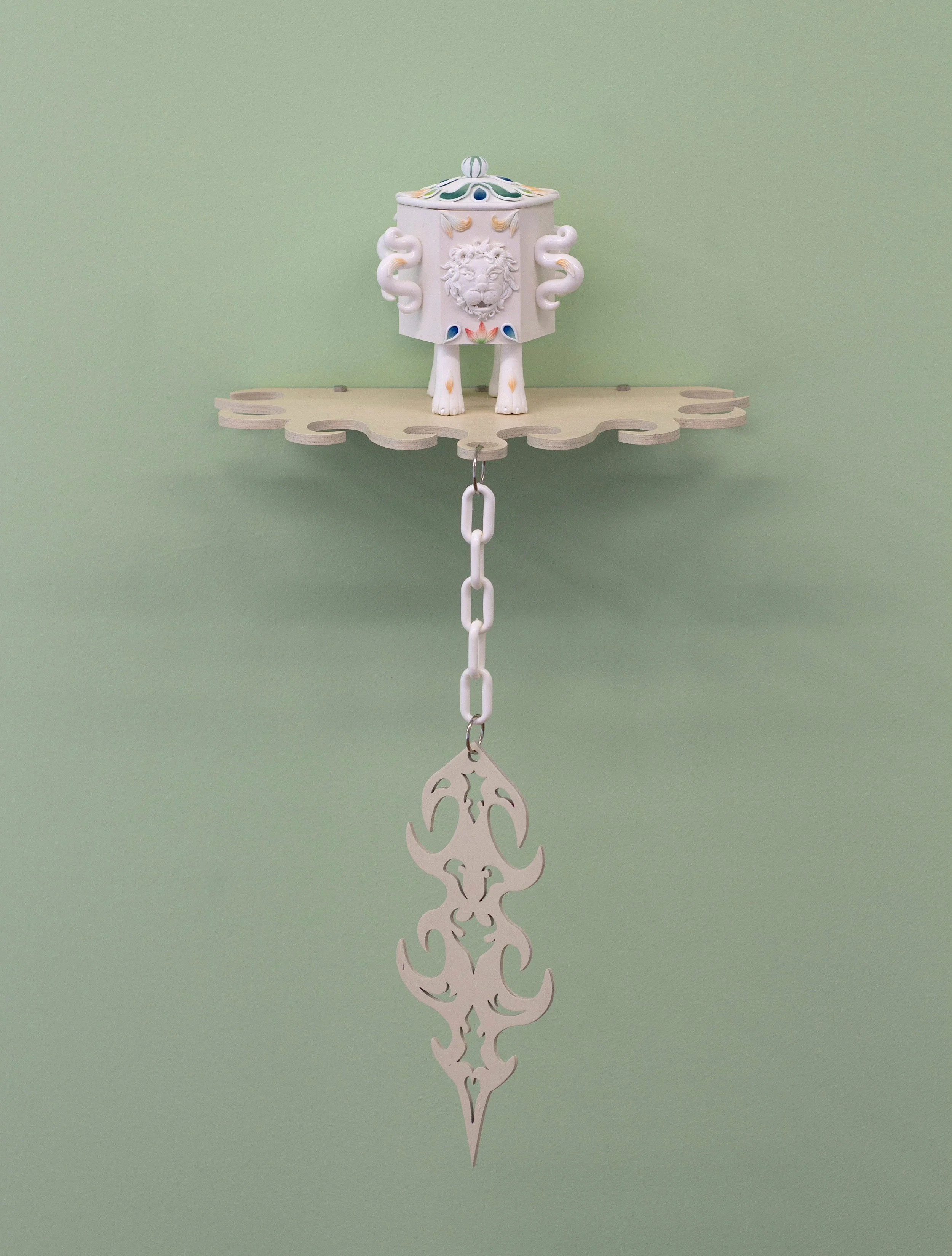 ‘Shards of Fire’ relates to the large-scale sculptural works that started this journey of personal and cultural exploration that has shaped my practice over the last 4 years. I’d had this desire to use my practice as a way to connect and explore my mixed Chinese-Singaporean and British heritage and became captivated and intrigued by the 18th-century design style Chinoiserie. Whilst I was intrigued by the exuberant, ornamental and fantastical nature of Chinoiserie I was also aware of its colonial history and its similarities to modern-day cultural appropriation. I wanted to reimagine Chinoiserie in a more appropriate way, using the practice as a means to explore and reflect upon my own mixed cultural identity, whilst cherishing its extravagance and vibrance. From this began a series of large-scale furniture-like sculptures inspired by the creaturely and iconographic aesthetic of Chinoiserie. These sculptures were both functional and ornamental in their design and appearance.