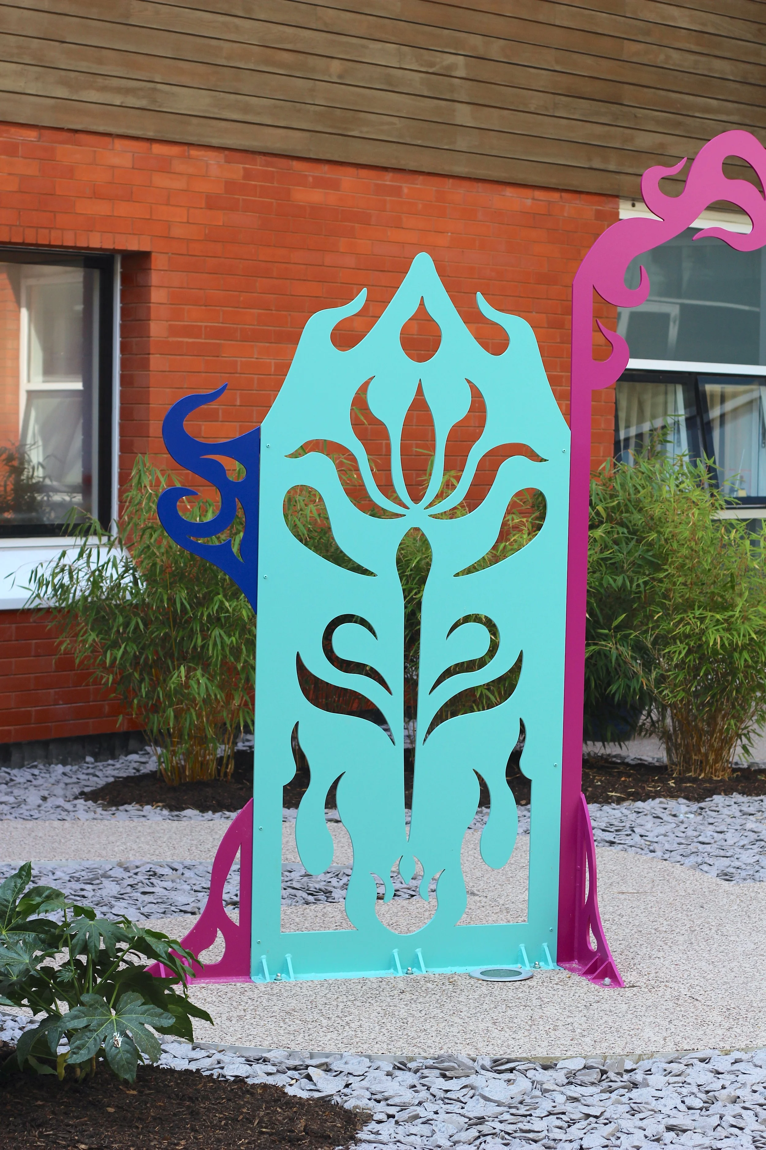When figuring out the design for this work I decided I really wanted it to evoke a sense of calm and peacefulness. This was affirmed for me during my workshop where we spoke to staff working across the hospital. Through these conversations it felt really important that this work and the surrounding courtyard design should be something that provided patients and staff with a respite from the busy goings on of the hospital.